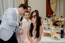 Если Вы не хотите ломать голову над тем, как развлекать многочисленных гостей во время банкета, то Вам необходим профессиональный тамада на свадьбу. Такой человек способен развеселить любую публику! На нашем портале представлены портфолио свадебных ведущих Вашего города. Страница каждого ведущего дополнена контактными данными, описанием услуг, фотографиями с проведённых праздников. Также Вы сможете найти отзывы других молодожёнов о работе того или иного свадебного ведущего.